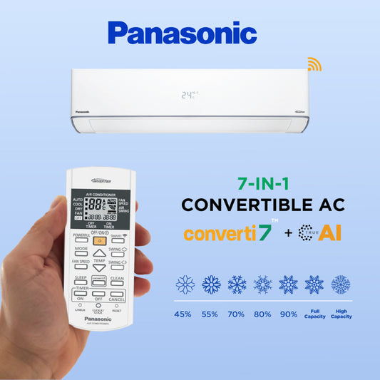 Panasonic 1.5 Ton 3 Star Inverter Split AC (100% Copper, 7 in 1 Convertible, 2 Way Swing, CS/CU-RU18AKY,2024 Model